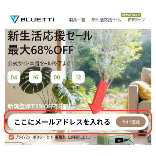 BLUETTI(ブルーティ)公式サイトで今すぐ5%OFFクーポンを取得する↓↓↓